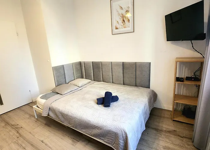 Dit appartement is uitgerust met een waterkoker, een koelkast en een broodrooster in een complete keuken. Binnen 13 minuten lopen kunnen gasten dineren in Lamadżu en Piwnica Smakow. Het 1-badkamer appartement ligt op een gemiddelde afstand van de dichtstbijzijnde bushalte North.